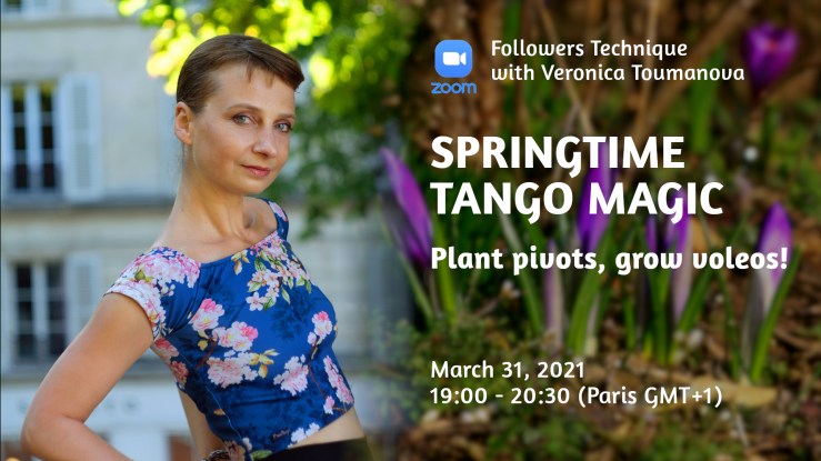 You can now purchase my three online technique workshops for followers from the series “SPRINGTIME TANGO MAGIC” that I have taught in the spring of 2021. Each workshop recording is 1h30min long and the price is 20 eur/video. To get the videos send me a message to vero@tangomonamour.com.